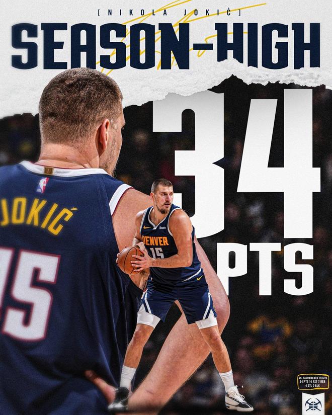 狂轰34+7+14+4抢断,约基奇创2大神迹,掘金力擒国王!威少26+12
